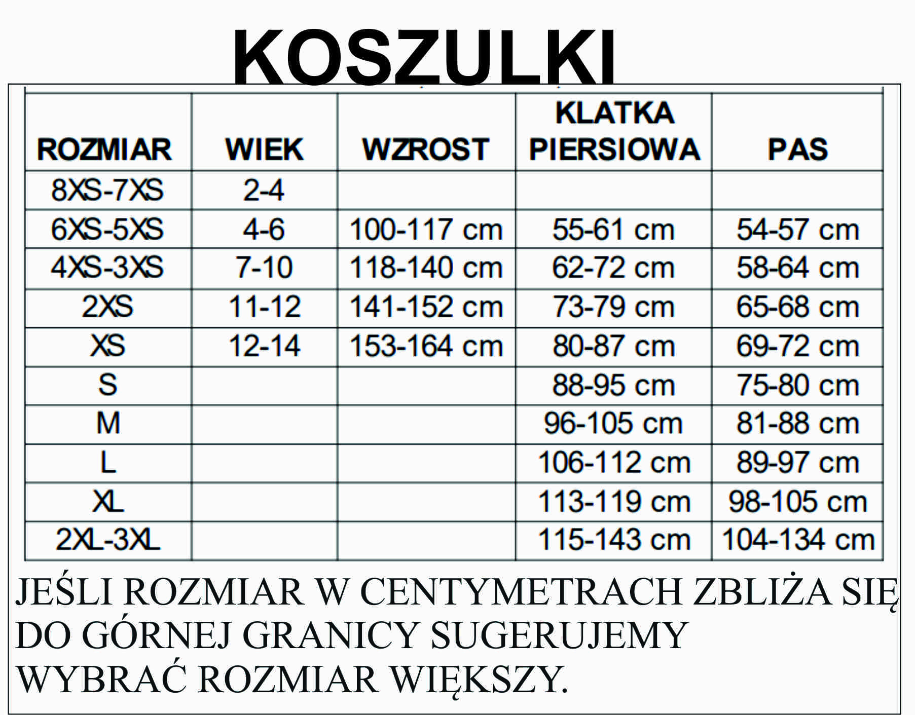 | Rozmiar | 8XS-7XS, 6XS-5XS, 4XS-3XS, 2XS, XS, S, M, L, XL, 2XL-3XL |